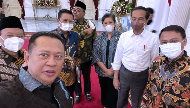 Ketua MPR RI Bambang Soesatyo bersama pimpinan MPR RI lainnya memastikan kepada Presiden Joko Widodo bahwa Pokok-pokok haluan Negara (PPHN) akan dihadirkan sebagai Bintan ...
